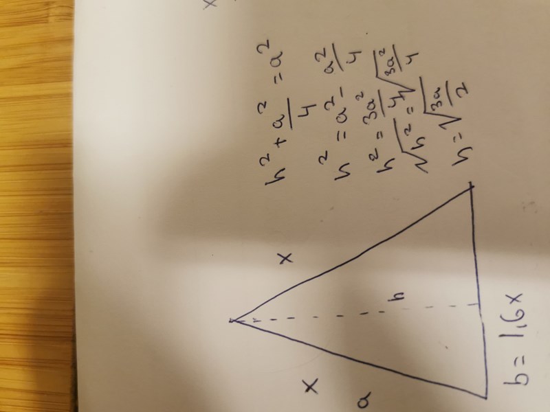 a = b × h /2 dvs 1,6/2= 0,8x2 + h2 = x2