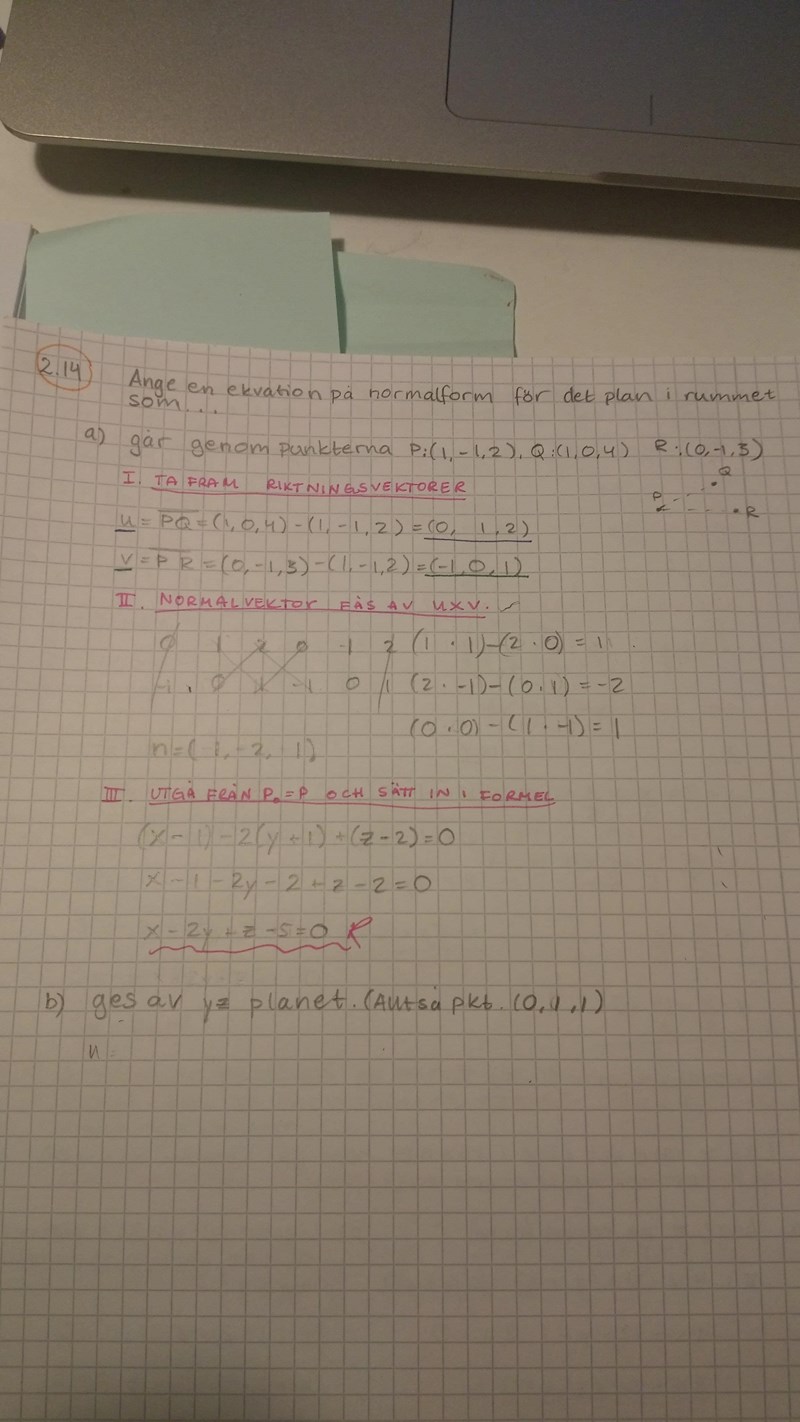 Svaret är ju rimligt då yz-planet kan skrivas som (x,y,z)=(0,1,1). Men jag undrar om man kan räkna ut det? Denna fråga jag skrivit ut är en delfråga av en uppgift. Se bild för den första deluppgiften.