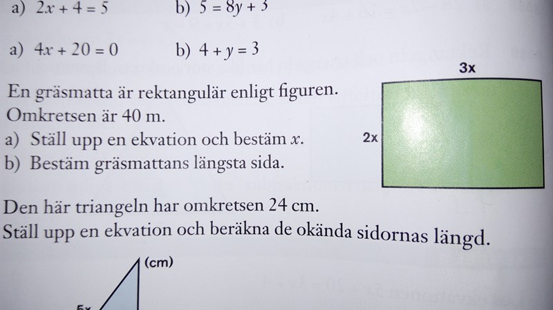 Behöver hjälp med b) Bestäm gräsmattans längsta sida.