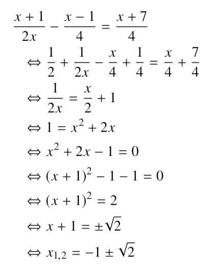Om du fortsätter som jag skrev ovan så kommer du till x2+2x-1=0