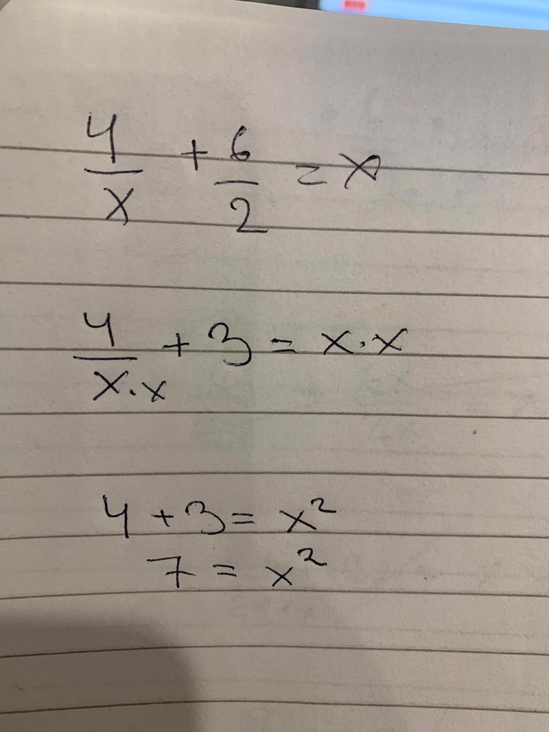 Du hade då ekv.          4/x  +  3  =  x