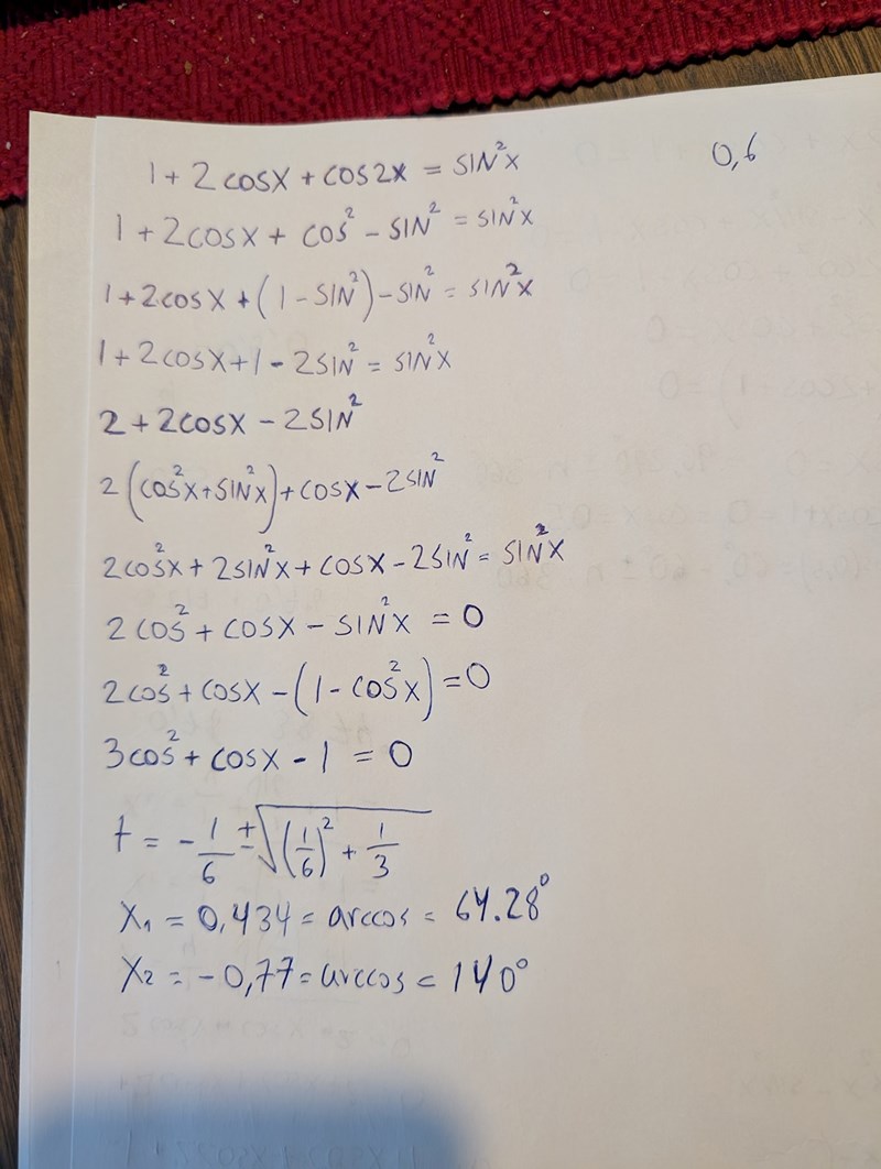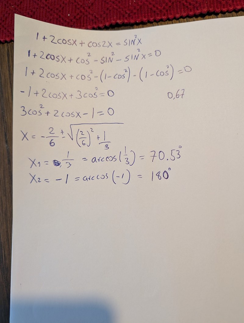 1+2cosx + 2cos^2x -1, vet inte hur man kommer fram till det riktigt