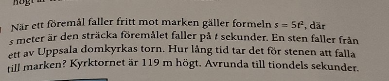 Meningen är att du skall komma på att du skall lösa ekvationen 119 = 5t2. Det gör man inte frivilligt utan miniräknare.
