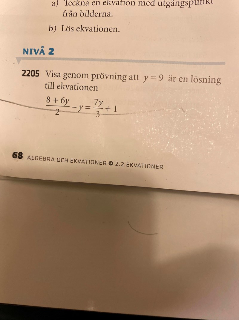 Du ska visa att detta stämmer genom att ersätta y med 9 och då se att vänsterledet och högerledet är lika.