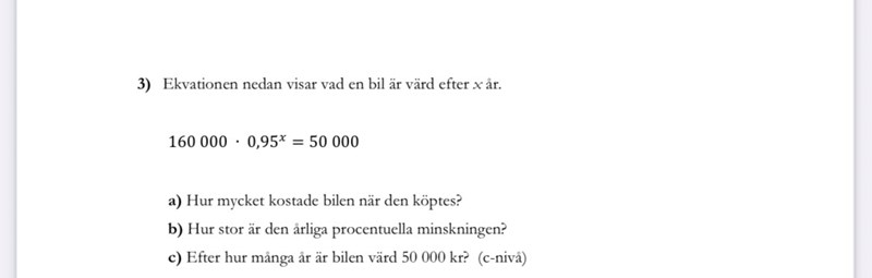 Lös ekvationen 50 000 = 160 000.0,95x.