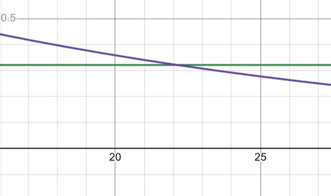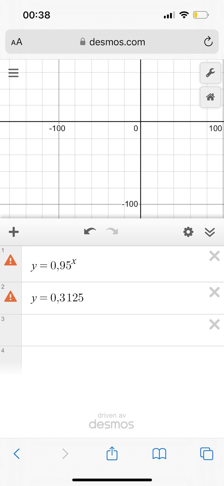 Ett sätt är att rita graferna till y = 0,3125 och y = 0,95X och sedan ta reda på vid vilket x-värde dessa grafer skär varandra.