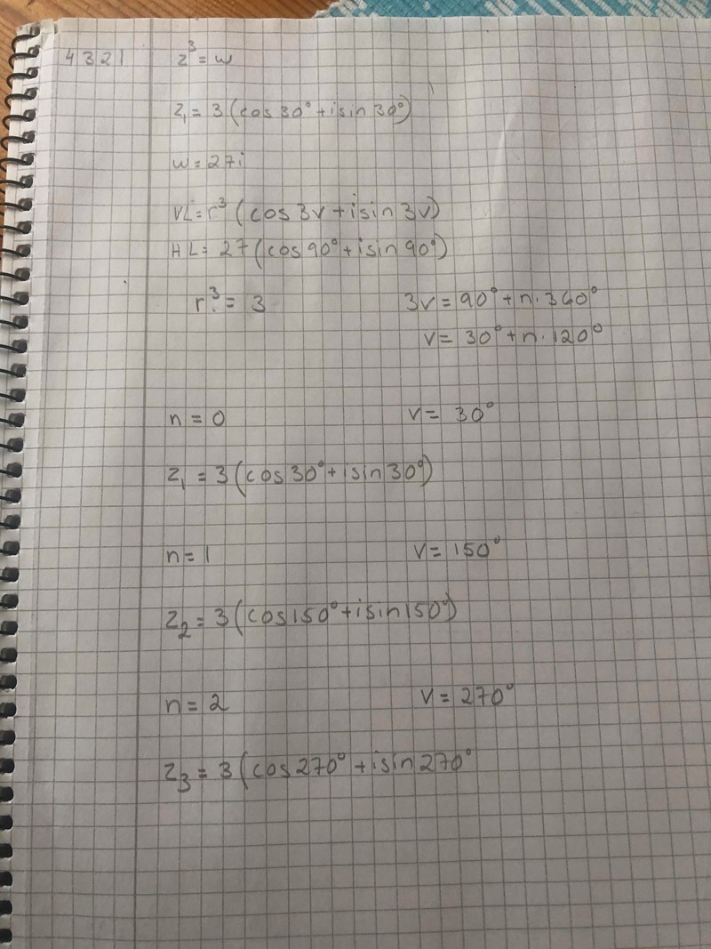 Den här typen av ekvationer har sina rötter jämt fördelade på en cirkel. Med 3 rötter blir det således 120 grader mellan varje rot.