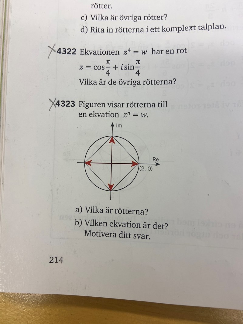 En rot är given, nämligen z1 = 2 + 0•i eftersom en av pilarna pekar på punkten (2; 0).