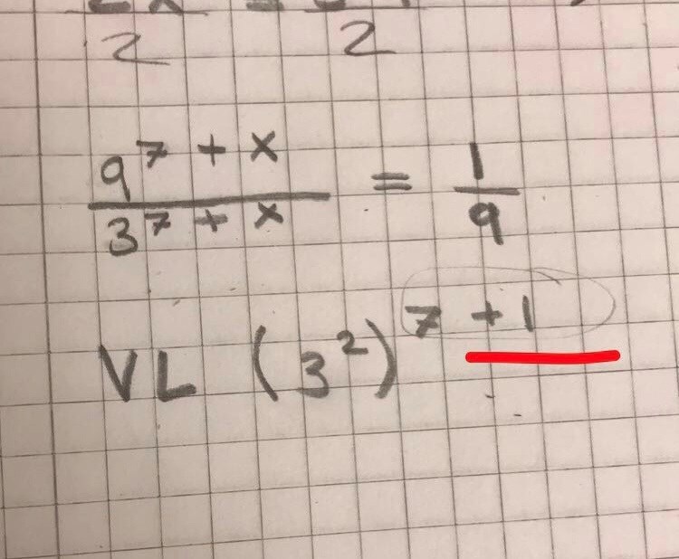 Förstår inte varför det ska bli 7 + 1, borde det inte bli upphöjt till 7 + x istället? Vart kommer ettan ifrån?