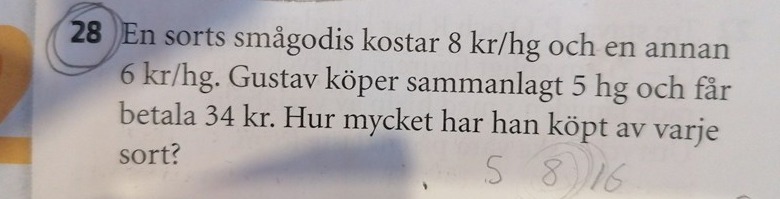 kanske 8x+6x=34kr ? ingen aning hur man ska börja
