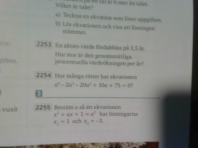 Aha, då tror jag egentligen frågan skulle lyda ”om vi ritar kurvan y = a4–…+75, på hur många ställen har kurvan kontakt med x-axeln (fast här blir det a-axeln)?