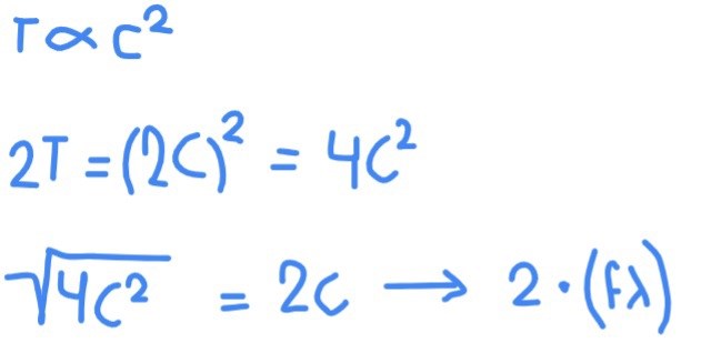 Hur förändras frekvensen när spänningen är fördubblad? Mitt svar är att den också fördubblas, men tydligen ska vara √2 så stor