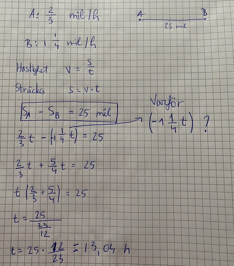 Jag fick hjälp och löste uppgiften, men jag förstår inte varför vi skrev -1 1/4 ? Varför blev det negativt?