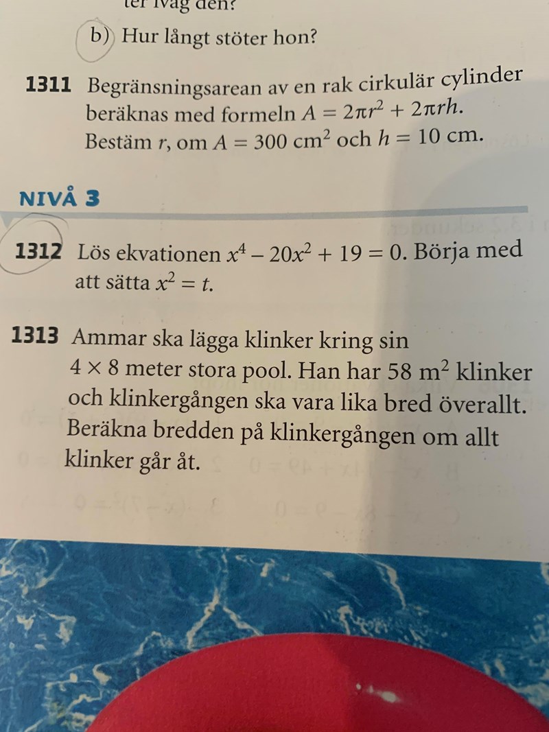 Jag är på uppgift 1312 och är lite förvirrad. Ekvationen jag fick när jag satt x^2=t var t^2-20t+19=0. Sedan antog jag att jag kunde använda mig av antingen den ”kvadratiska formeln” är inte säker om det kallas exakt så eller pq formeln. Jag använde den kvadratiska formeln och fick fram svaret att x1=19 och x2= 1