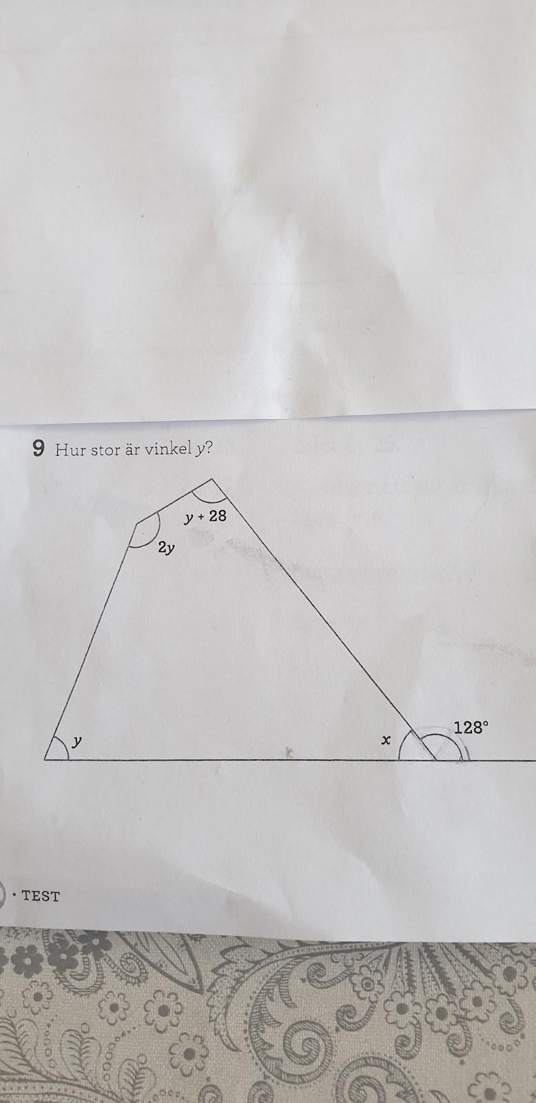 Sätt sedan upp och lös ut y ur ekvationen x+y+2y+y+28° = 360°