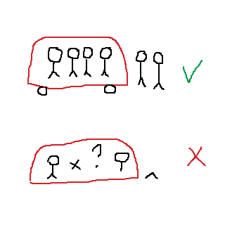 När 1/3 går av menar de inte 1/3 av en person utan 1/3 av alla som finns på bussen. Ser du skillnaden?