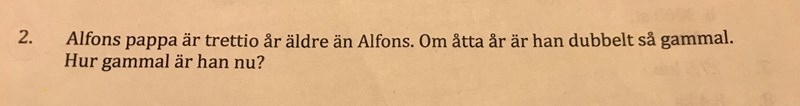 Alfons är x år och Alfons pappa är x+30 årAndra meningen?