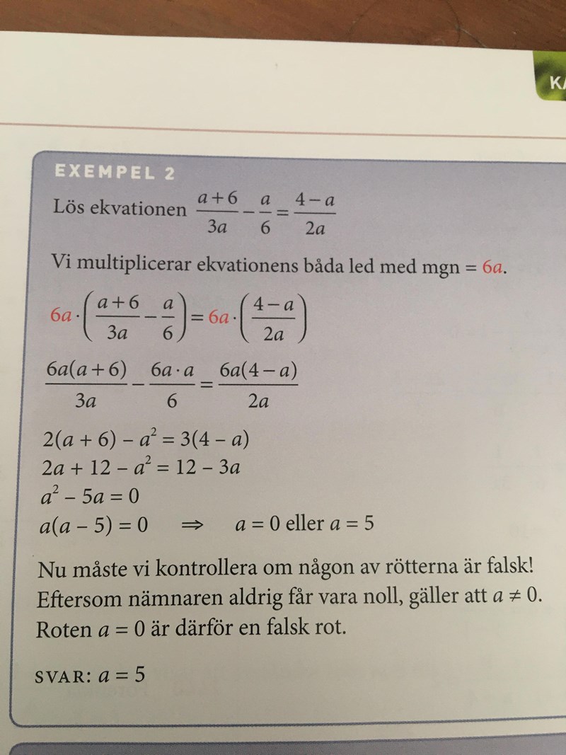 Smaragdalena skrev:Jämför med uppgiften! Ser du att tu har tagit fram nämnaren 6a?