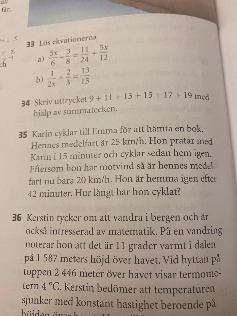 Karin cyklar till Emma med medelfarten 25 km/h.
