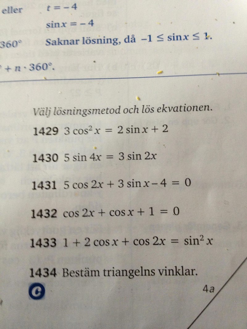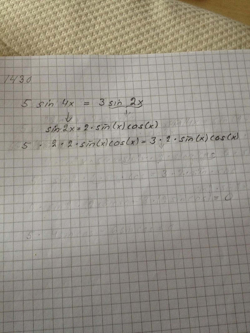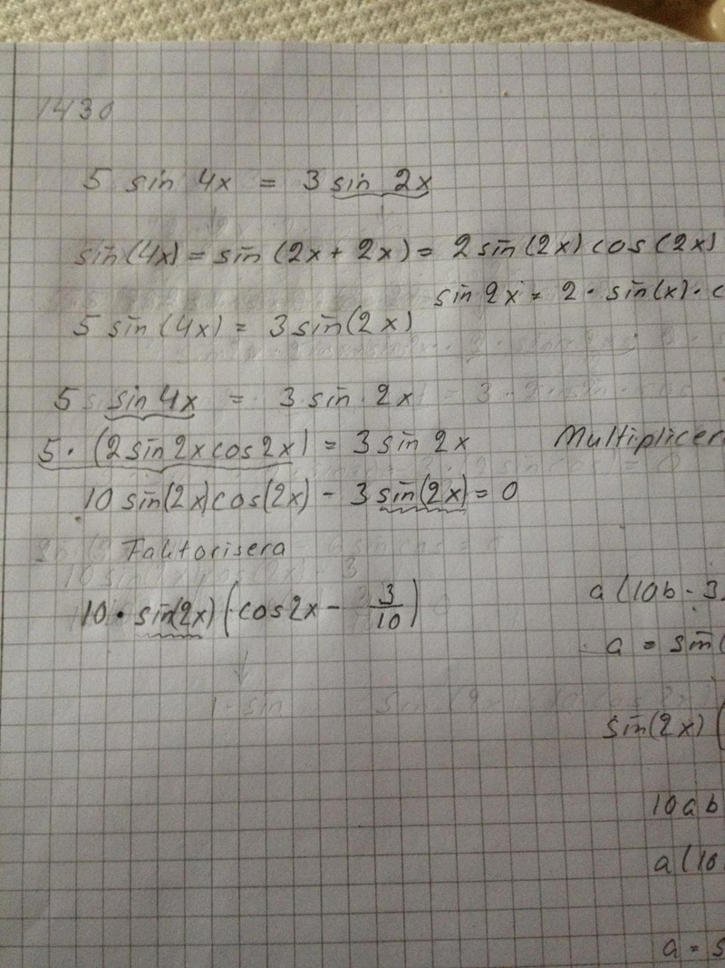 sin 4(x) vållade problem, när jag inte förstod, hur jag skulle göra, när jag vet att sin2x= 2*sin(x)cos(x)