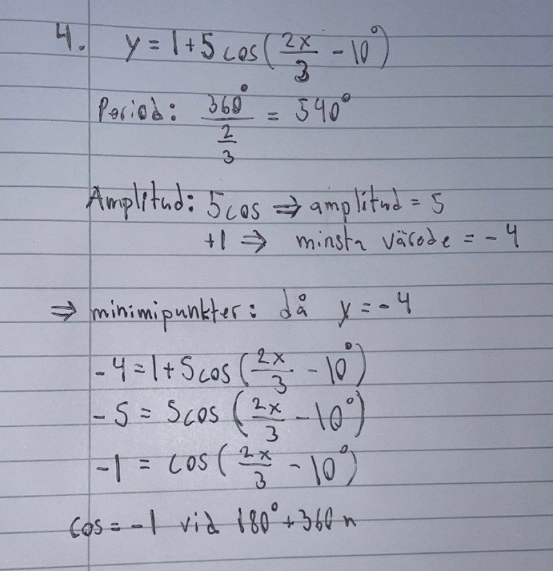 Ett steg på vägen är att ta fram de värden på x som gör att cosinusuttrycket antar sitt minsta värde.