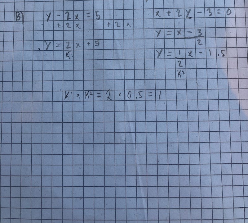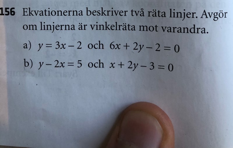 Ekvationerna beskriver två räta linjer. Avgör om linjerna är vinkelräta mot varandra. Matte 2b