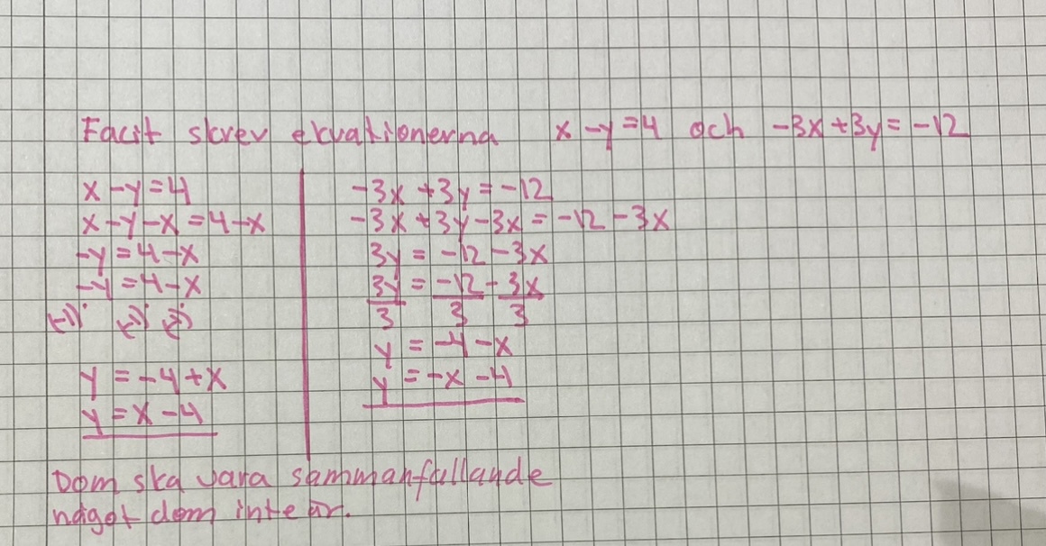 Rättar uppgifter jag gjort & kom till en uppgift som gav ett ekvationssystem som exempel till svar. Jag valde att göra om exemplet till k form för att därefter se om ekvationssystemet som facit givit har likande grafer som mitt svar.