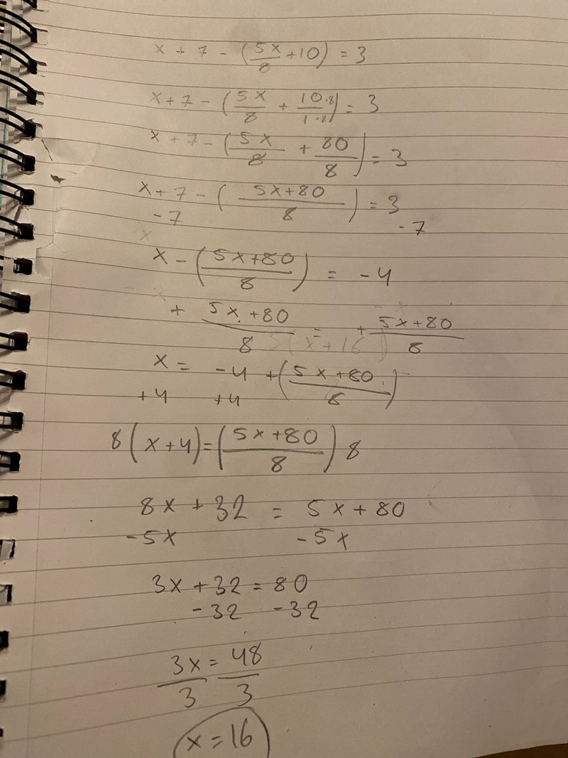 Hej! Jag tror inte den här ekvation behöver lösas så bökigt som jag har löst den. Hur hade ni gjort?