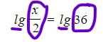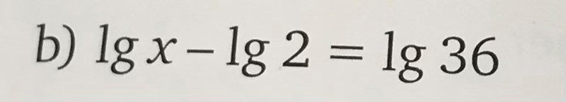 Kom fram till lg x/2 = lg 36 men hur fortsätter jag sedan?