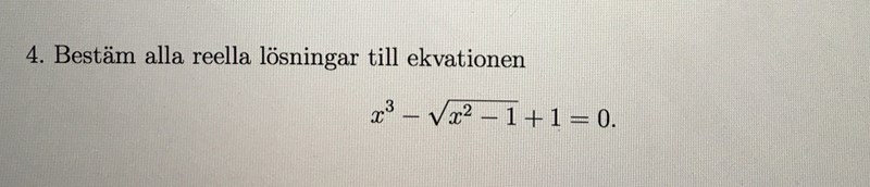 Stokastisk skrev :Ja, mycket bra! Så då vet du alltså att x = -1 är enda lösningen.
