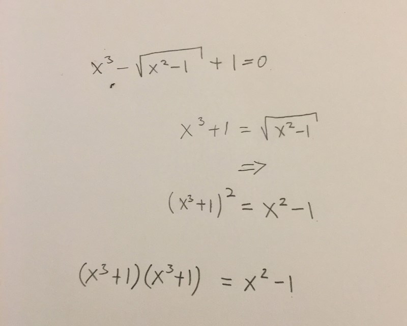 Efter som x^3 är alltid större än x^2 då x är >1 så kan inte vänster ledet vara lika med höger ledet och om x är 1 så är VL=2 och HL=0?