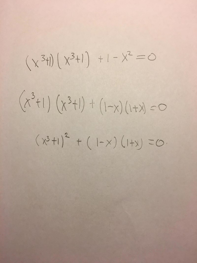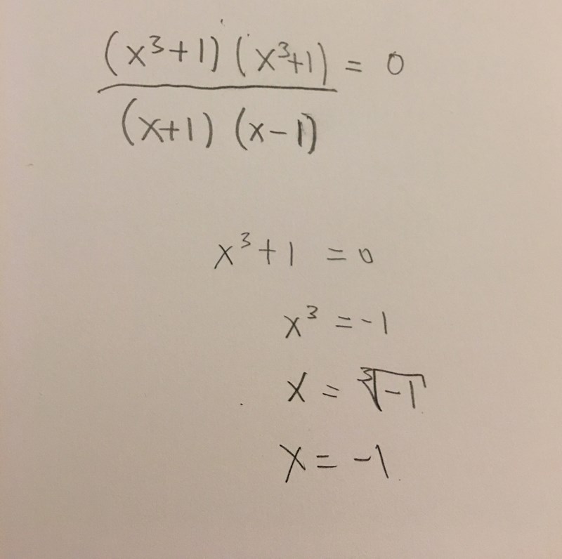 Får x = -1 då (x^3+1) blir 0 och på så sätt blir högerled 0.