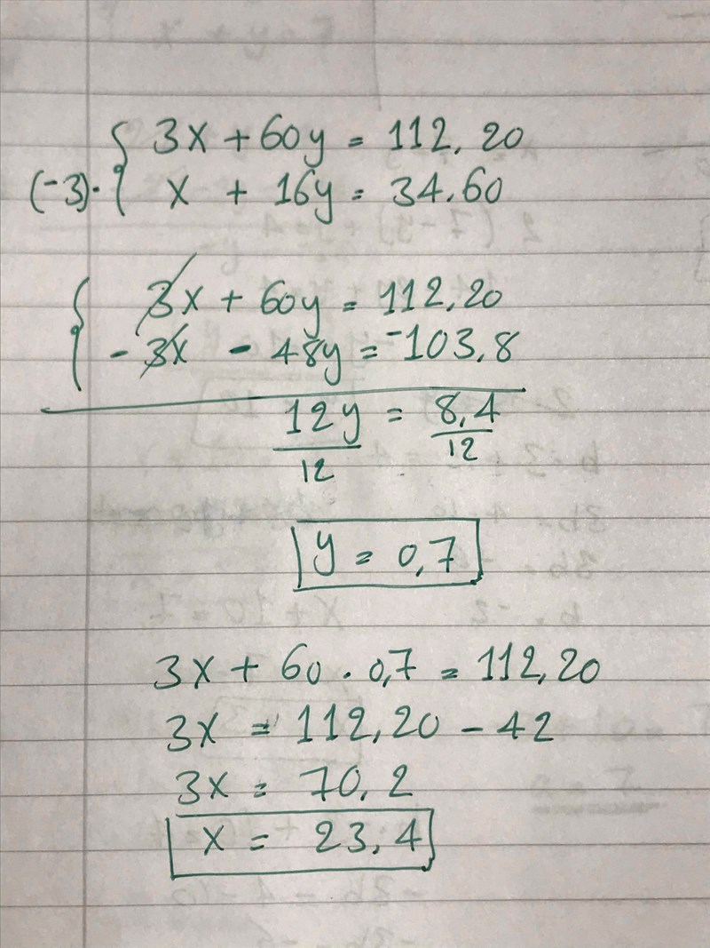 Ekvationen för Joses pant blir då 3x+60y=112,20.