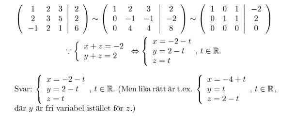 När jag löste systemet ovan får jag nedersta raden till 0 0 0 | 0 , som ovan.