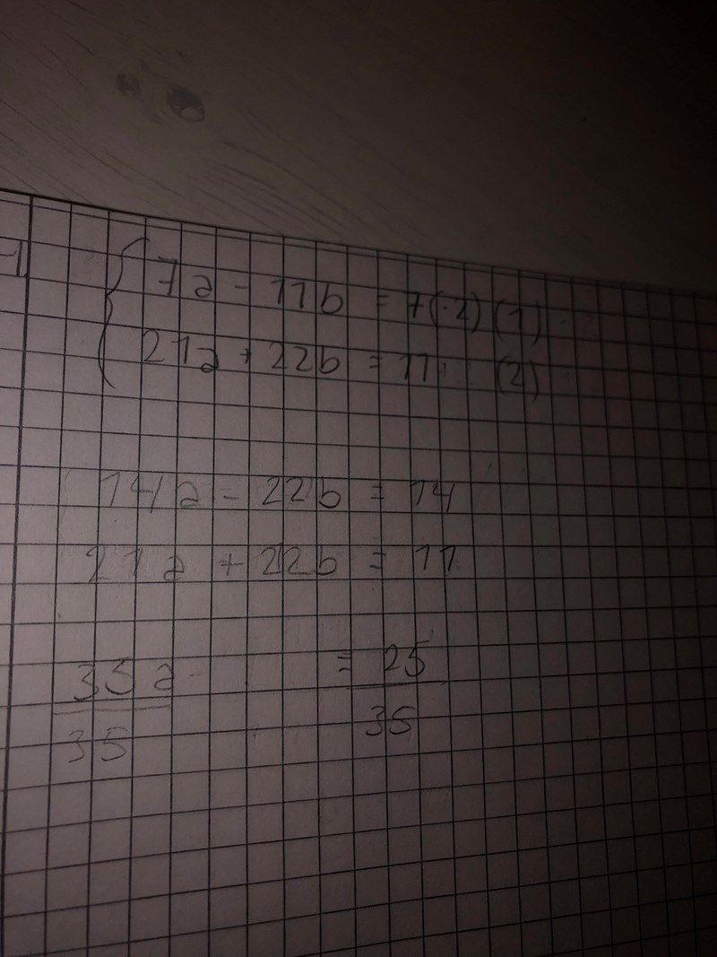 7a-11b=7, lös ut vilken som du vill. Jag väljer a.