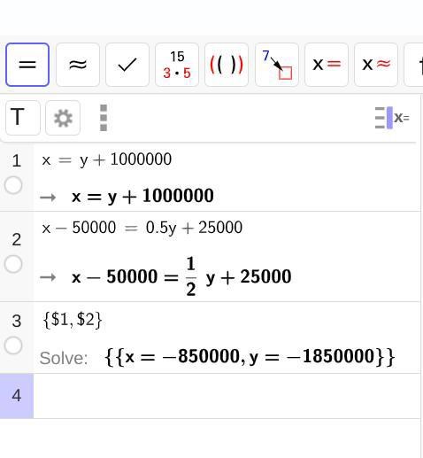Jag skrev in ekvationssystemet på geogebra, men i facit står det 6 miljoner?