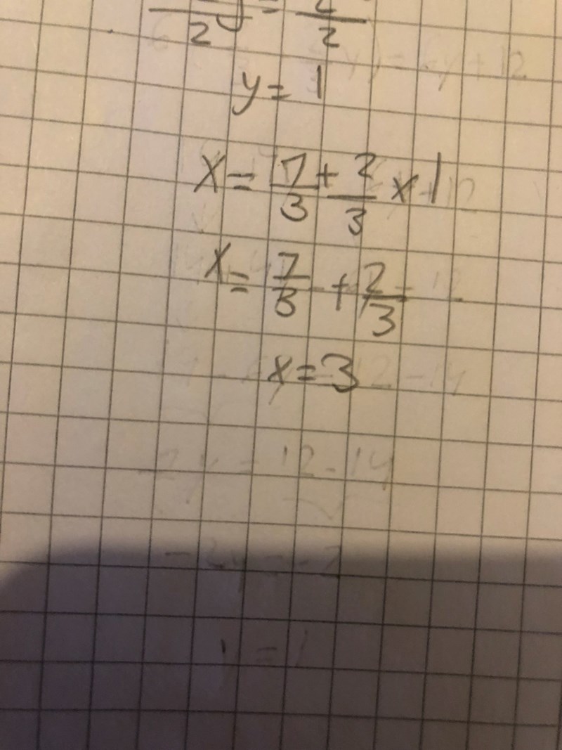 • Sätt in x = 1 och y = 3 i första ekvationen. Kolla att det stämmer.