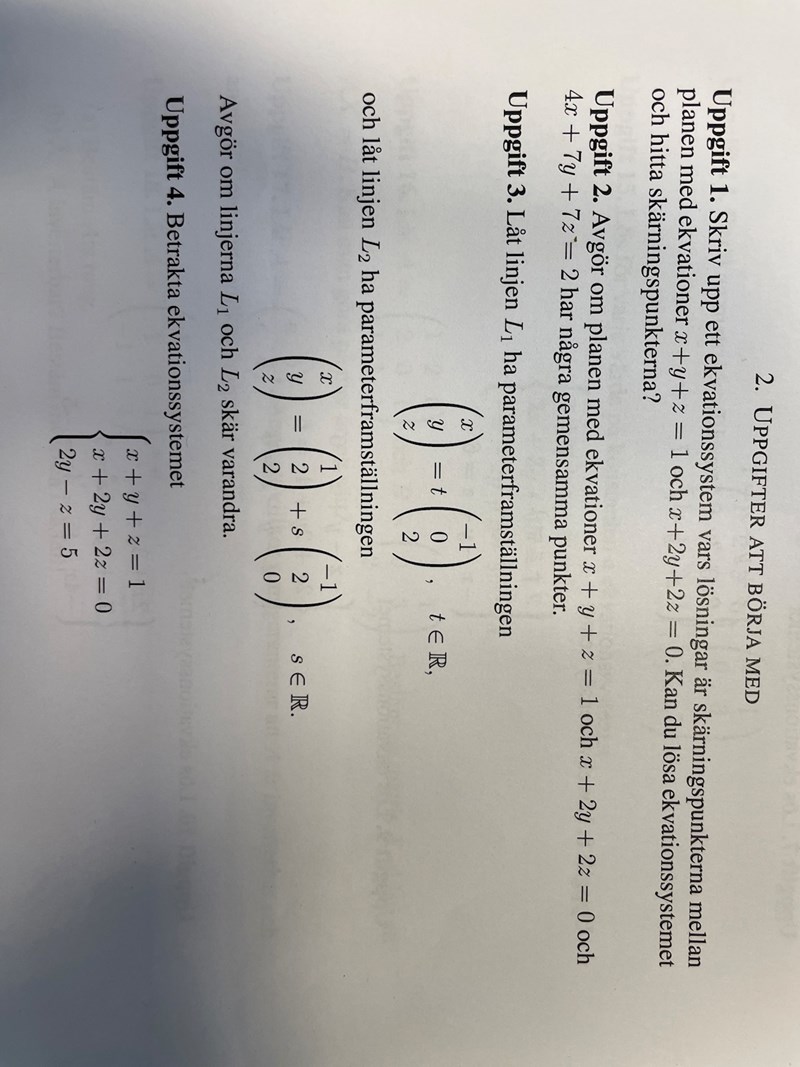Vi har med andra ord att skärningen kan beskrivas som en linje: