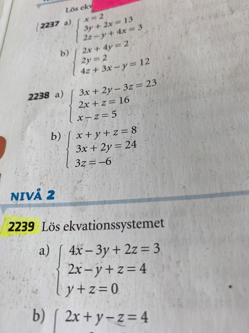 Använd värdet 5 för y och räkna ut z = -y = -5 och sedan x ur z=9-2x.
