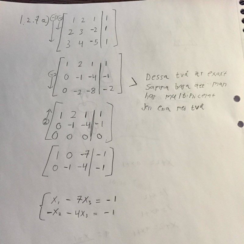 Det enda jag förstår av det du skrev och som jag kan dra nytta av är den sista raden. Okej men då parametriserar jag x3 eftersom den finns i båda ekvationerna. Va bra då vet jag att det är frivilligt.