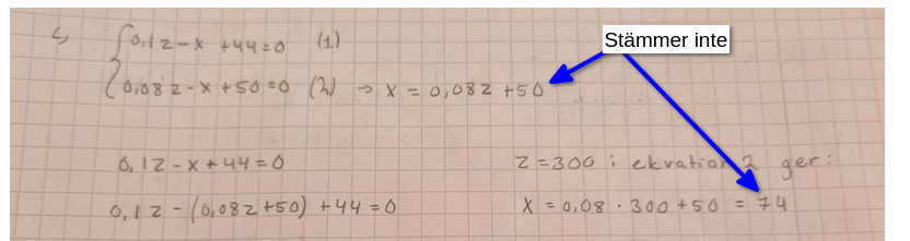 Sedan fick jag reda på att z = 300. Då stoppade jag i det värdet istället för z och fick att x = 74