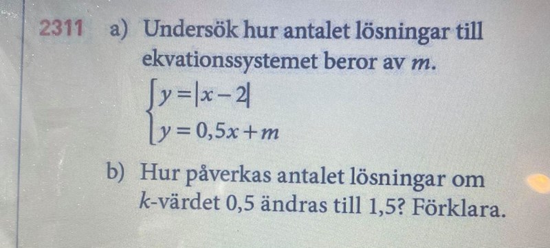 Börja med att rita! Rita in grafen till , och grafen till för några olika värden på m. Vad ser du? :)
