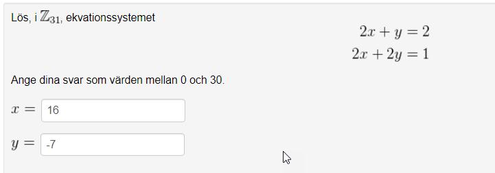 Är detta svar i Z31? Jag tror att detta y=-1 måste jag hittar inversen i Z31 och då tänker jag att jag får ta (31-1)/2= 15 så y=15 är det rätt?