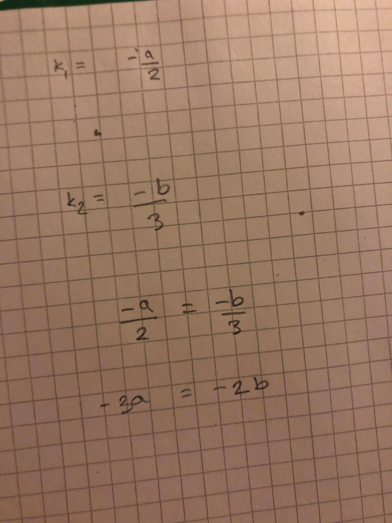 Bra början. Du har hittat k-värdena för de båda linjerna.