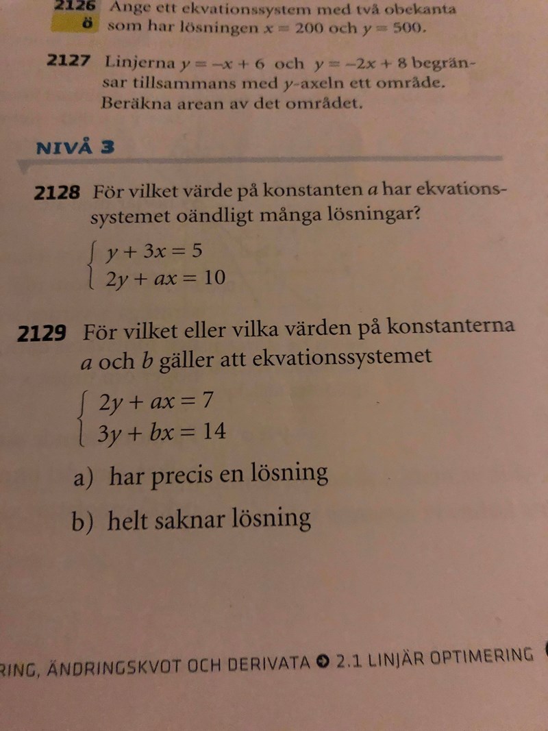 "Ekvationssystemet saknar lösning för alla värden på a och b som uppfyller sambandet b = 1,5a."