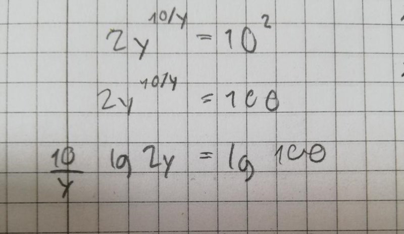 10lg((2y)^x)) = 102 vilket förenklat blir