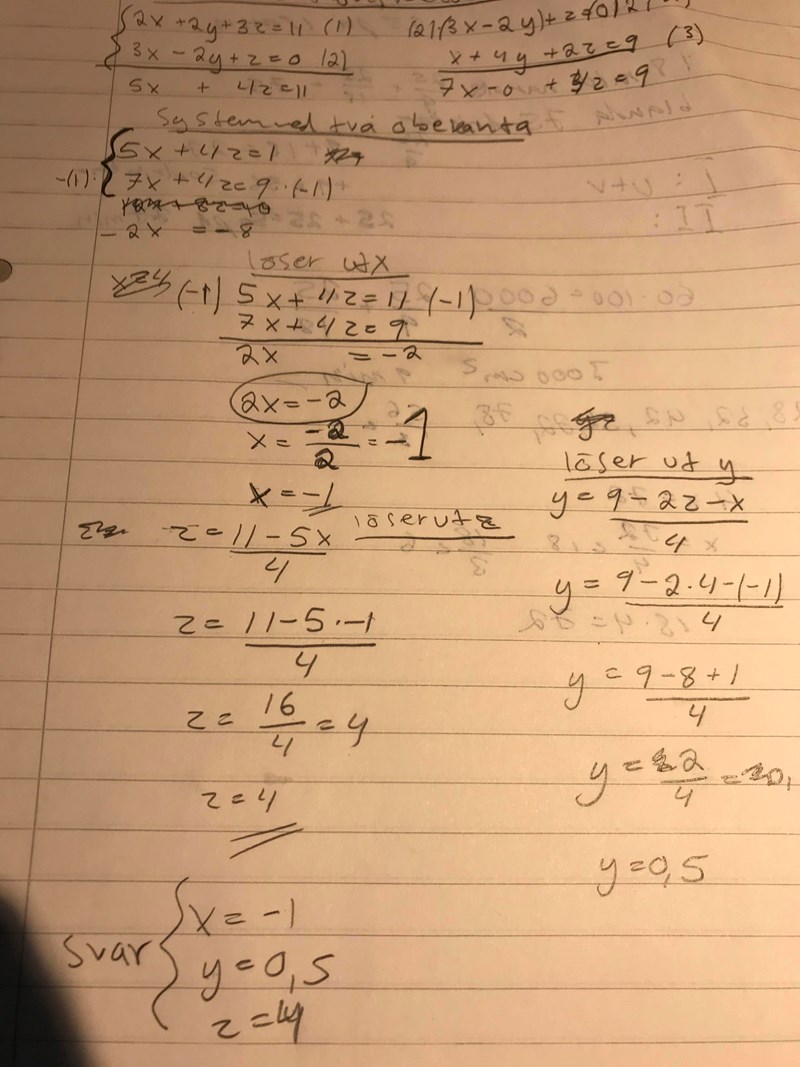 Om du gjort rätt har du nu två ekvationer och två obekanta (x och z)