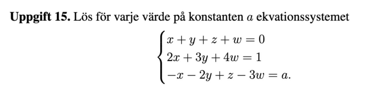 Börja lösa ekvationssystemet som vanligt och gör så långt du kan, vad får du då?