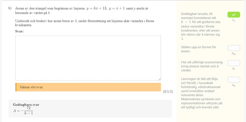 Nej boken har k–1 i nämnaren, jag har 1–k. Eftersom k < 1 får boken negativ areal.