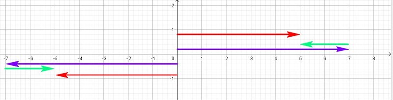 (7-2) = 5 Lägg till sju lila och dra från två gröna. Resultatet blir fem röda.